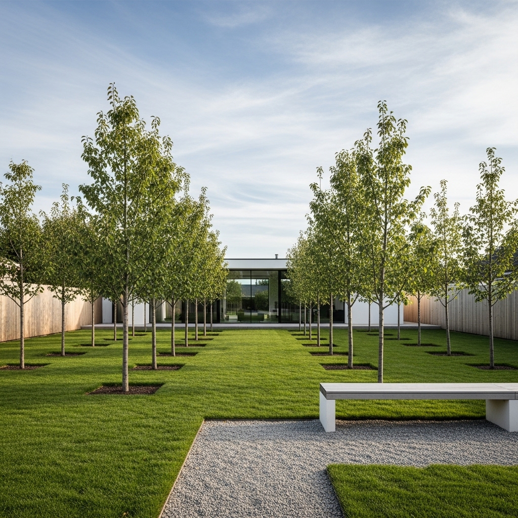 Simple layouts reduce visual clutter. Focus stays on tree form and health. Maintenance becomes more efficient. This style suits modern homes. It feels clean and intentional.