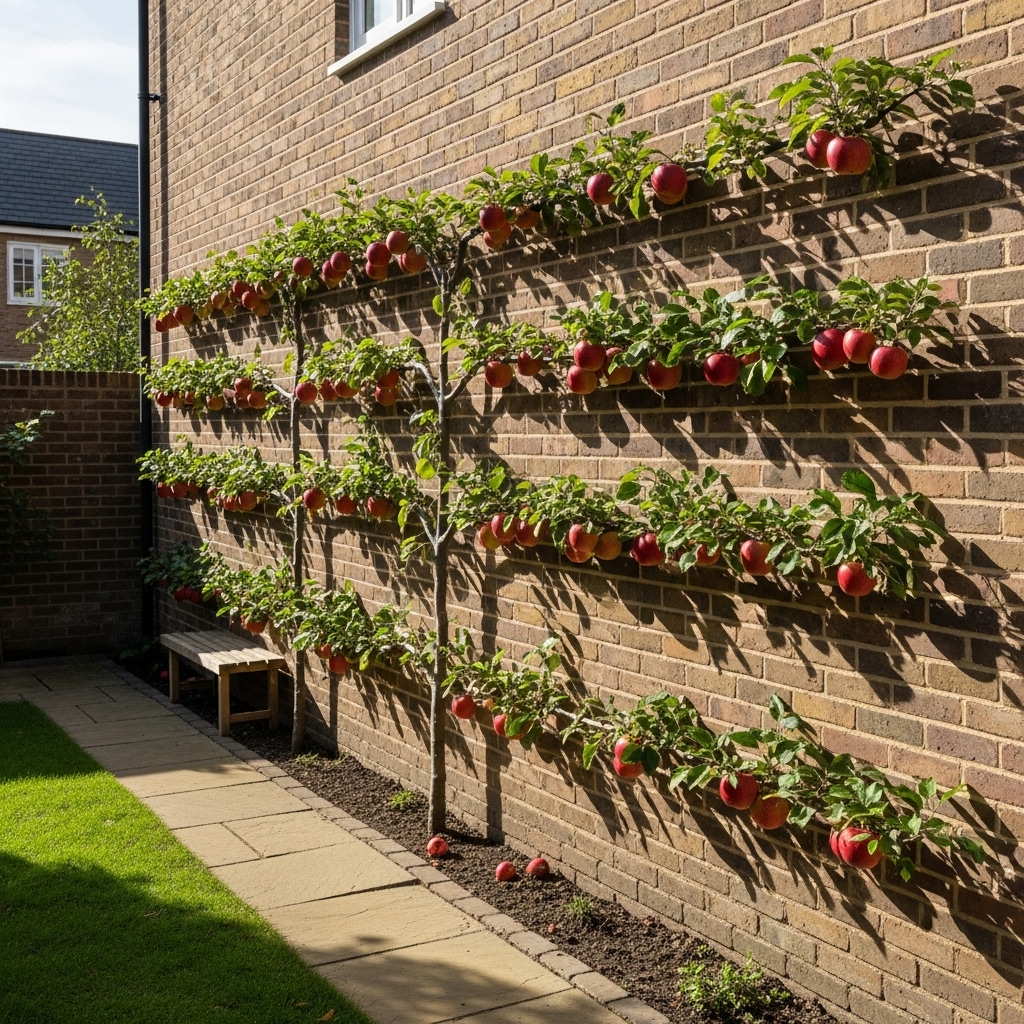 Espaliered trees grow flat against fences or walls. This saves space while adding architectural interest. Sun exposure is easier to control. Fruit production stays efficient. It’s perfect for narrow backyards.