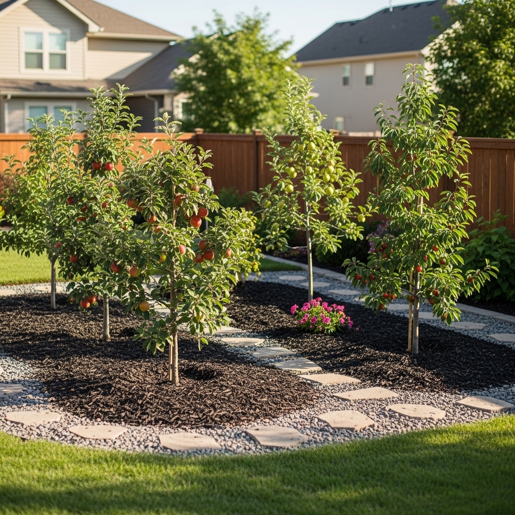 Dwarf fruit trees are ideal for limited backyard space. They grow smaller but still produce full-sized fruit. Their compact form makes pruning and harvesting easier. Spacing is more manageable than standard trees. This layout works well in suburban gardens.