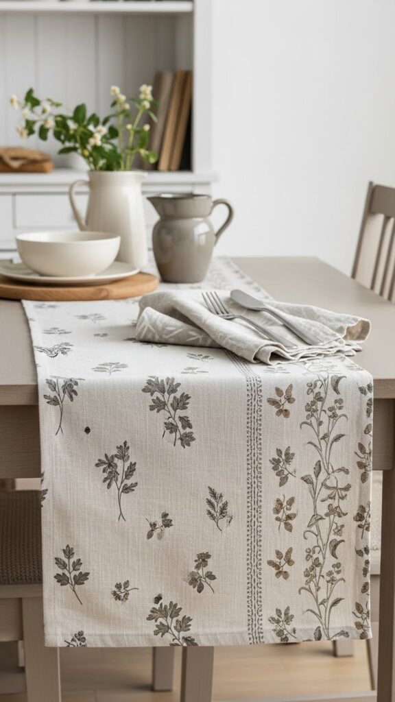 Table runners made from soft fabrics add warmth to dining spaces. Neutral tones and subtle patterns feel relaxed and inviting. They help define the table without overwhelming it. A simple runner can change the feel of a room. Dining areas benefit from soft layering.