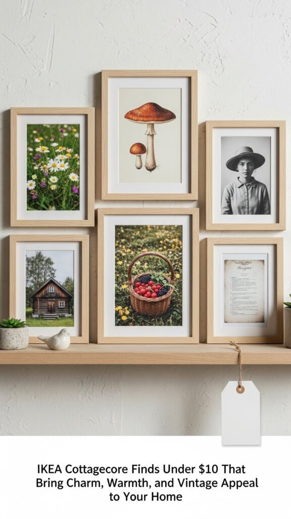 Simple frames allow artwork and photographs to shine. Light wood or neutral finishes complement cottagecore décor beautifully. These frames create a soft, cohesive look on walls or shelves. Personal photos add emotional warmth. Small details make spaces feel personal.